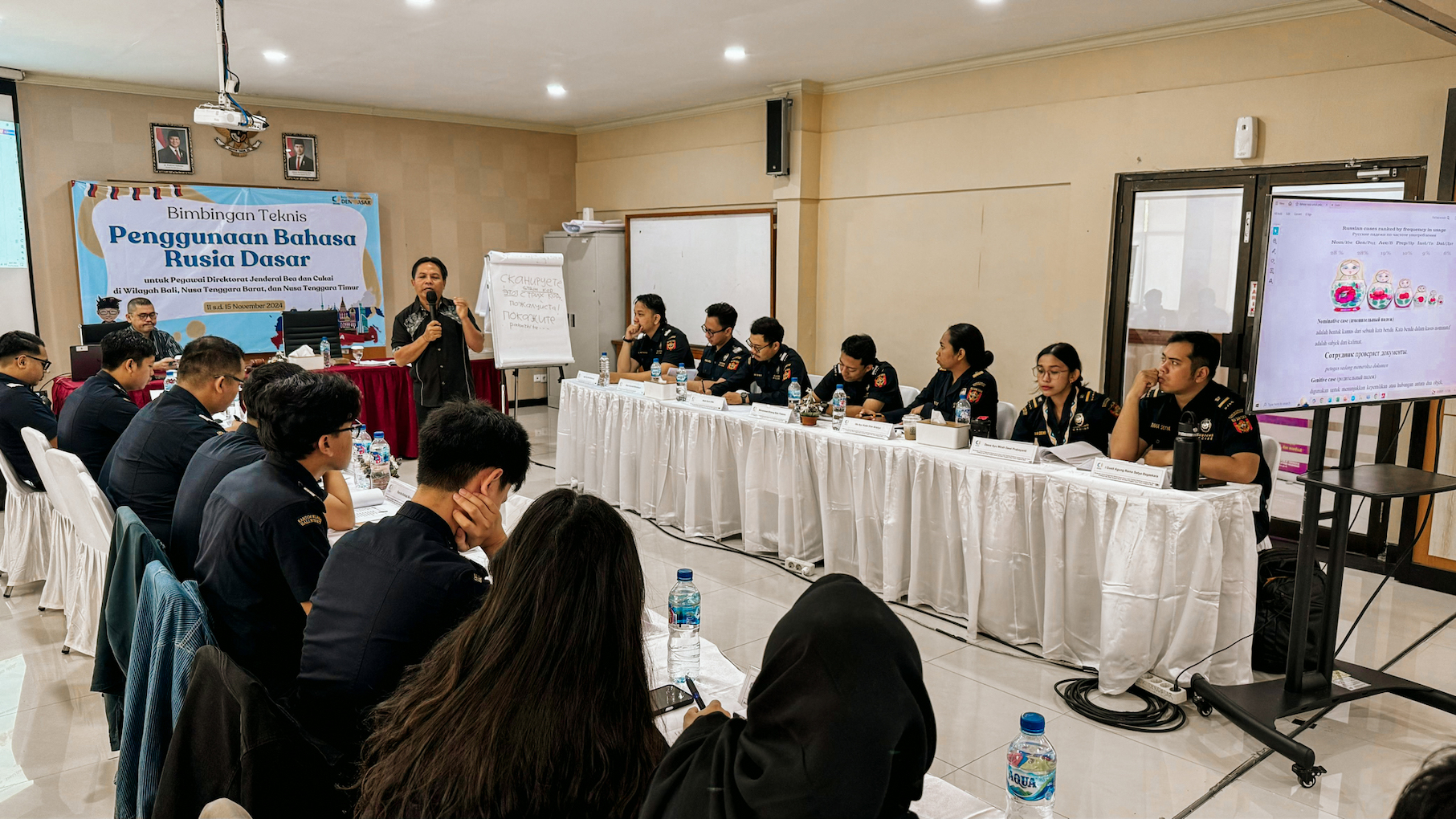 Dalam upaya meningkatkan kompetensi berbahasa asing pegawai, Bea Cukai Ngurah Rai ikuti Bimbingan Teknis Penggunaan Bahasa Rusia Dasar untuk Pegawai DJBC yang diselenggarakan secara sinergi oleh Kanwil Bea dan Cukai Wilayah Bali, NTT dan NTB serta Balai Diklat Keuangan Denpasar. Kegiatan ini berlangsung selama lima hari, dari 11 hingga 15 November 2024, bertempat di Balai Diklat Keuangan Denpasar